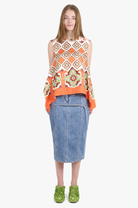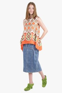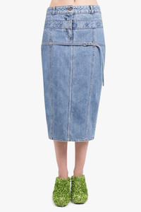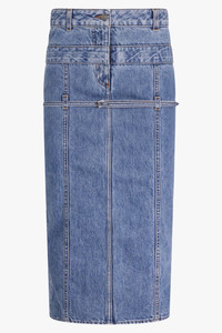 La Jupe De Nimes Criollo from Jacquemus boasts the signature double waistband and lowered buckle belt for a contemporary take on the classic denim midi skirt. Fabrication: 100% Organic Cotton Made in Portugal Size and Fit Nikita: Model is 174cm/5’7” and is wearing a size25 Model Measurements: Bust: 30cm, Waist: 26.5cm, Hips 34cm Fits true to size Measurements Size 25: Waist 72cm, Hip 84cm, Length 75cm Size 26: Waist 74cm, Hip 86cm, Length 75cm Size 27: Waist 76cm, Hip 88cm, Length 75cm Size 28: Waist 78cm, Hip 90cm, Length 75cm Size 29: Waist 80cm, Hip 92cm, Length 75cm