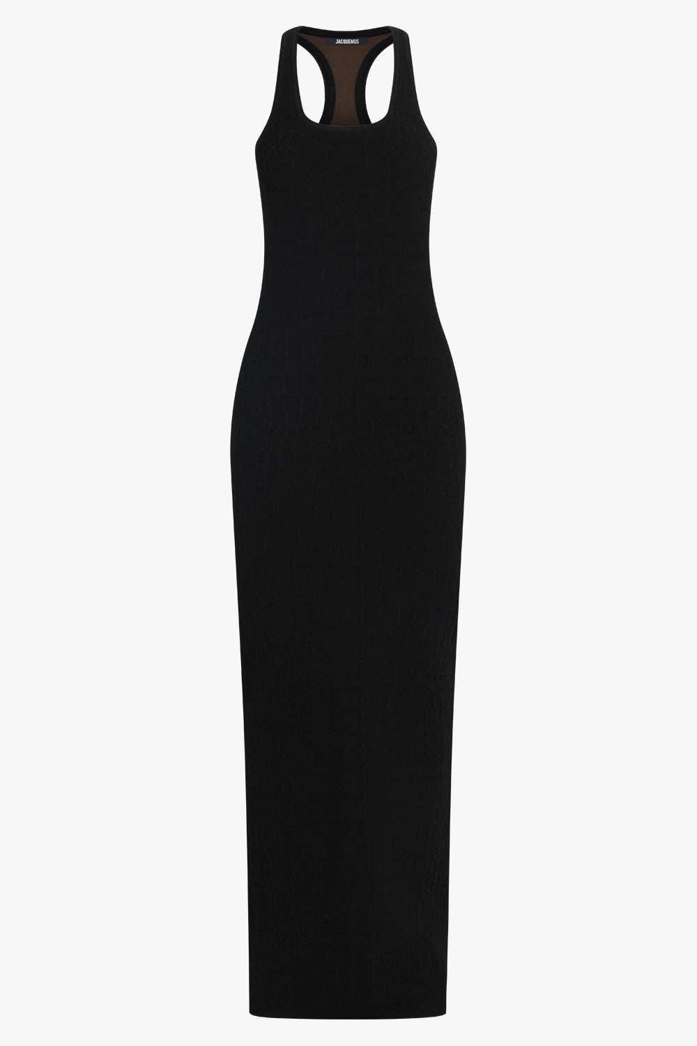 - Fabrication: 72% Viscose - 25% Polyamide - 3% Elastane - Long racerback dress - Long fitted shape - Crocodile embossed stretch viscose - Square neckline - Sleeveless - Raceback - Long back slit - “J” locker loop Size and Fit Sophie: Model is 179cm/5’10” and is wearing a size FR36 Model Measurements: Bust: 76cm, Waist: 61cm, Hips 87.5cm French sizing Fits true to size