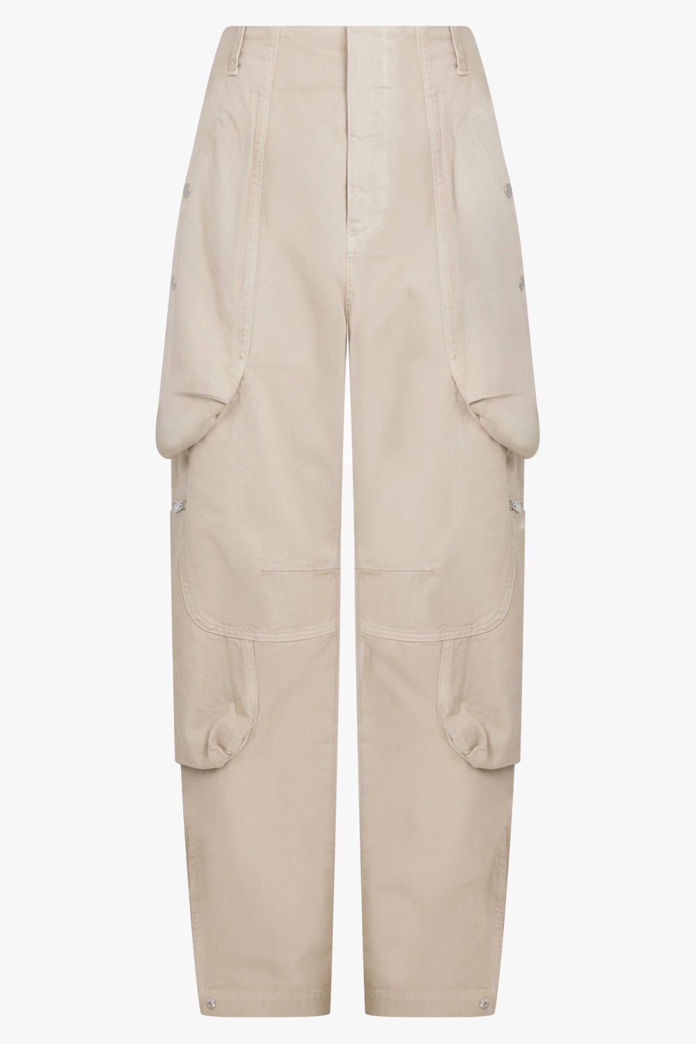 Jacquemus brings a characterful vision of French fashion to the design of every new collection. The Le Cargo Croissant are low-rise and loose-fit cotton canvas cargo pants with workwear topstitching and side welt pockets. Fabrication: 100% Cotton Size and Fit Alex: Model is 183cm/6’00” and is wearing a size 48 Model Measurements: Bust: 81cm, Waist: 75cm, Hips 81cm Oversized fit Measurements Size 48: Waist 84cm, Hip 86cm, Length 114cm Size 50: Waist 86cm, Hip 96cm, Length 114cm Size 52: Waist 90cm, Hip 102cm, Length 114cm