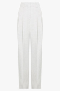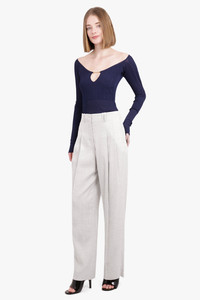 The Le Pantalon Titolo in Light Grey offers a high-waisted, loose fit design with a hidden zip and button closure, pressed pleats, side-seam pockets, and a split waistband in the back for added comfort. Complete with a back welt pocket featuring a "J" button loop, these pants are both functional and stylish. Fabrication: 100% Viscose Size and Fit Sophie: Model is 179cm/5’10” and is wearing a size 36 Model Measurements: Bust: 76cm, Waist: 61cm, Hips 87.5cm Fits true to size Measurements 44: Waist 70cm, Hip 80cm, Length 111cm 36: Waist 74cm, Hip 84cm, Length 111cm 38: Waist 78cm, Hip 88cm, Length 111cm 40: Waist 80cm, Hip 90cm, Length 111cm 42: Waist 86cm, Hip 94cm, Length 111cm