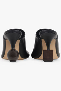 - Fabrication: 100% Calf leather - Geometric heel sandals - Smooth closed toe sandals - Round toe - Adjustable ankle straps with metal buckle - Embossed logo on insole - Leather sole and lining - Leather-covered heel - Wooden circle and square heel charm Size and Fit Heel height: 90mm French sizing Fits true to size