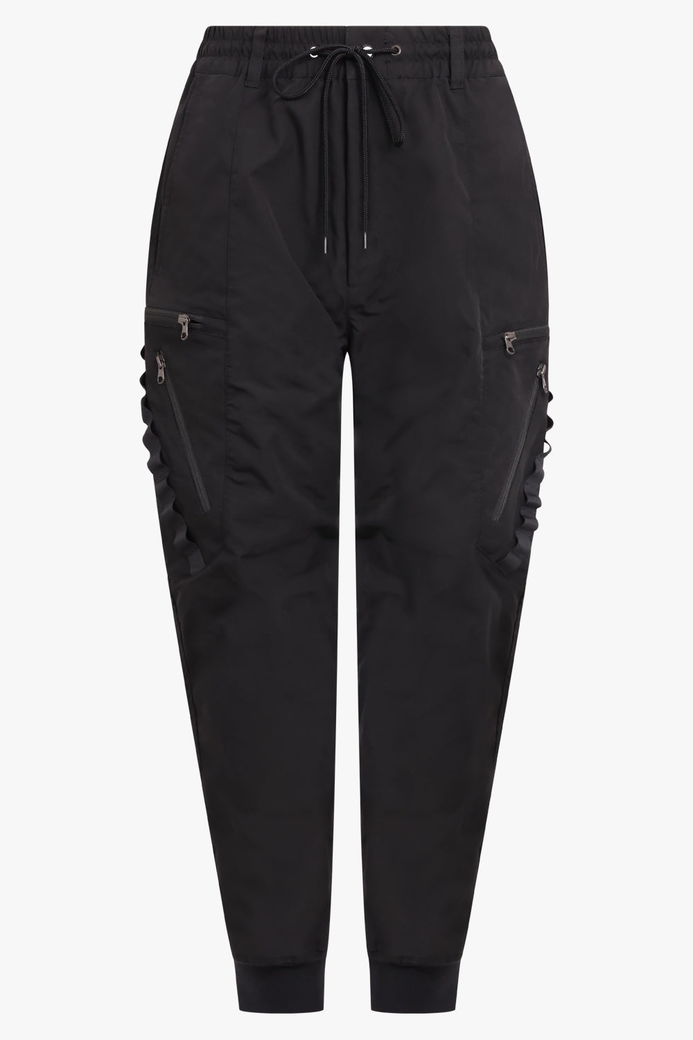 ZIP POCKET DETAIL CARGO CUFFED PANT | BLACK