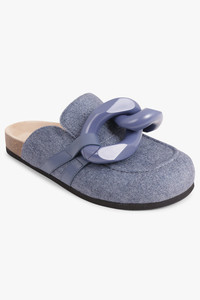 - Slip on loafer - Rounded toe - Large double chain - Denim finish - Contrast stitching - Classic cork sole Size and Fit Fits true to size Italian sizing