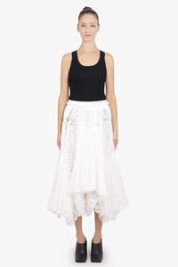 WOMENS MIXED LACE LONGLINE SKIRT IN WHITE