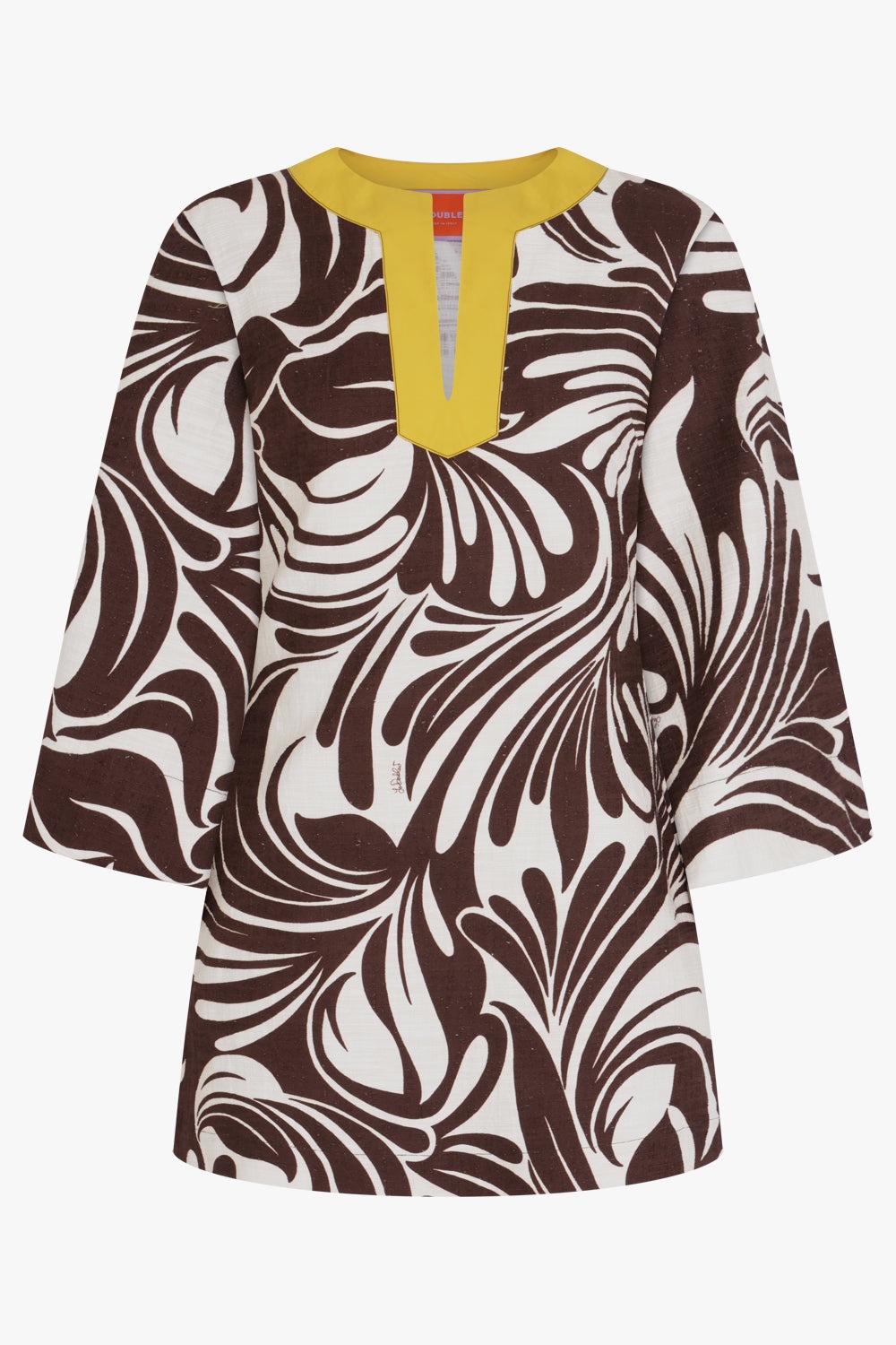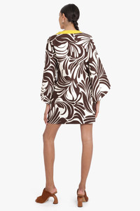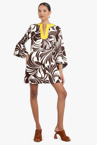 La DoubleJ works with top Milanese textile manufacturers to bring archival patterns to life on its signature eclectic styles. Made from pure Italian cotton, The Kaftan printed mini-dress is shaped with a classic split neckline, wide sleeves, side-slit pockets, and a light fit-and-flare silhouette. Fabrication: 100% Cotton Size and Fit Nikita: Model is 174cm/5’7” and is wearing a size XS Model Measurements: Bust: 30cm, Waist: 26.5cm, Hips 34cm Fits true to size Measurements XS: Bust 86cm, Waist 80cm, Hip 86cm, Length 84cm S: Bust 90cm, Waist 84cm, Hip 90cm, Length 84cm M: Bust 94cm, Waist 88m, Hip 94cm, Length 84cm L: Bust 98cm, Waist 92cm, Hip 98cm, Length 84cm