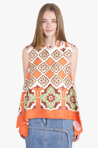 The La Double San Carlo Top in Partenope is crafted from silk, this style features a classic tank cut, before flowing into a romantic scarf train. Fabrication: 100% Silk Size and Fit Lacey: Model is 180cm/5’11" and is wearing a size S Model Measurements: Bust: 86cm, Waist: 72cm, Hips 89cm ————— This style fits true to size.