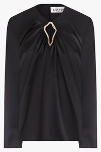 Featuring a Brass center accentuating the ruched chest, this Long Sleeve Draped Blouse has long sleeves and buttoned cuffs. Fabrication: : 37% Polyester Woven, 63% Triacetate Woven/Lining : 73% Cellulose Acetate Woven, 27% Size and Fit Nikita: Model is 174cm/5’7” and is wearing a size FR36 Model Measurements: Bust: 30cm, Waist: 26.5cm, Hips 34cm French Sizing Fits true to size Measurements Size 36: Bust 90cm, Waist 90cm, Hip 90cm, Length 68cm Size 38: Bust 92cm, Waist 92cm, Hip 92cm, Length 68cm Size 40: Bust 98cm, Waist 98cm, Hip 98cm, Length 68cm