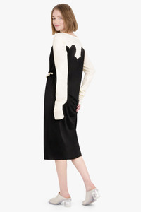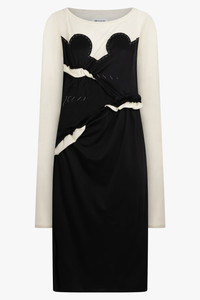 The spliced viscose-jersey dress features a yoke, inspired by the famous ink blots of the Rorschach test, with swirling lines at the chest to allude to the iconic yokes of the American West. The yoke showcases the Maison's decortique technique to reveal the underlying material of the garment, which exposes the process of construction – a new version of work-in-progress. Maison Margiela’s signature, the Four stitches, appear at the back Fabrication: 50% Viscose-Rayon 44% Cotton 6% Polyamide Size and Fit Sophie: Model is 179cm/5’10” and is wearing a size IT38 Model Measurements: Bust: 76cm, Waist: 61cm, Hips 87.5cm Italian Sizing Oversized loose fit Measurements 38: Bust 82cm, Waist 82cm, Hip 82cm, Length 114cm 40: Bust 86cm, Waist 86cm, Hip 86cm, Length 114cm 42: Bust 90cm, Waist 90cm, Hip 90cm, Length 114cm