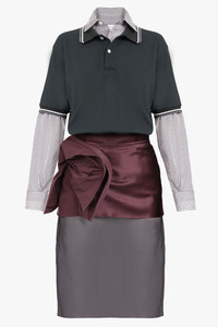 - Fabrication: 50% Silk, 50% cotton, 100% cotton - Long sleeve shirt style under top - Short sleeve polo over top - Ruched waist detail on skirt - Sheer skirt - Midi length Size and Fit Sophie: Model is 189cm/6’02” and is wearing a size IT40 Model Measurements: Bust: 76cm, Waist: 61cm, Hips 87.5cm Italian sizing Fits true to size Measurements Size 40: Bust 98cm, Waist 98cm, Hips 72cm, Length 115cm Size 42: Bust 102cm, Waist 102cm, Hips 76cm, Length 115cm