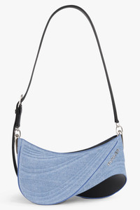 This medium blue/black Curve 01 M Deni bag features a structured and padded design with a combination of denim and buffed calfskin. The shoulder bag is equipped with an adjustable and detachable strap, and is detailed with logo hardware on the front. It securely closes with a zip and also includes a convenient card slot inside. The interior is lined with soft microsuede for added protection. Size and Fit Height 14cm X Width 28cm x Depth 13cm