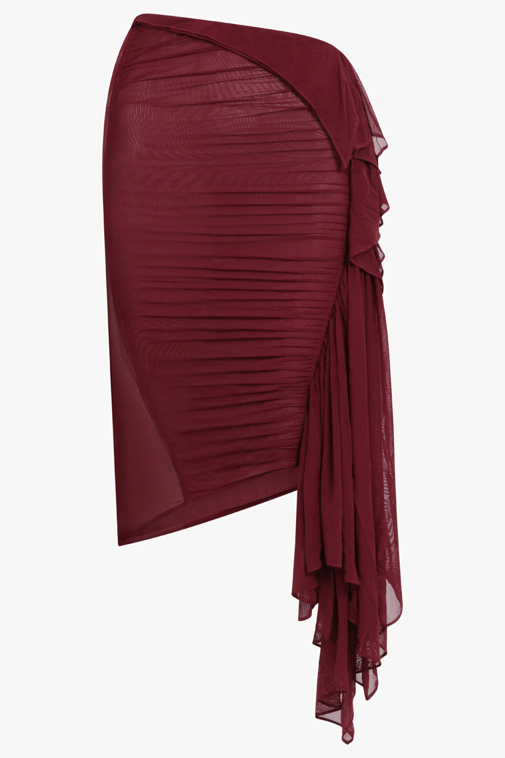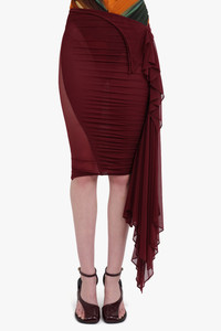 MESH ASYMMETRIC MIDI SKIRT | VAMPIRE RED