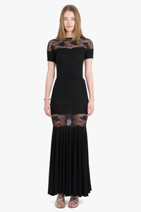 - Fabrication: 100% Viscose Minor: 85% Polyamide 15% Elastane - The Mermaid Skirt in Fluid Jersey - Lace Inserts - Fitted until the middle of the thighs - Slightly flared as it passes the knees Size and Fit Sophie: Model is 179cm/5’10” and is wearing a size FR34 Model Measurements: Bust: 76cm, Waist: 61cm, Hips 87.5cm French sizing Fits true to size