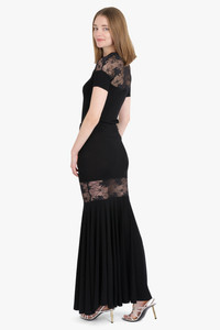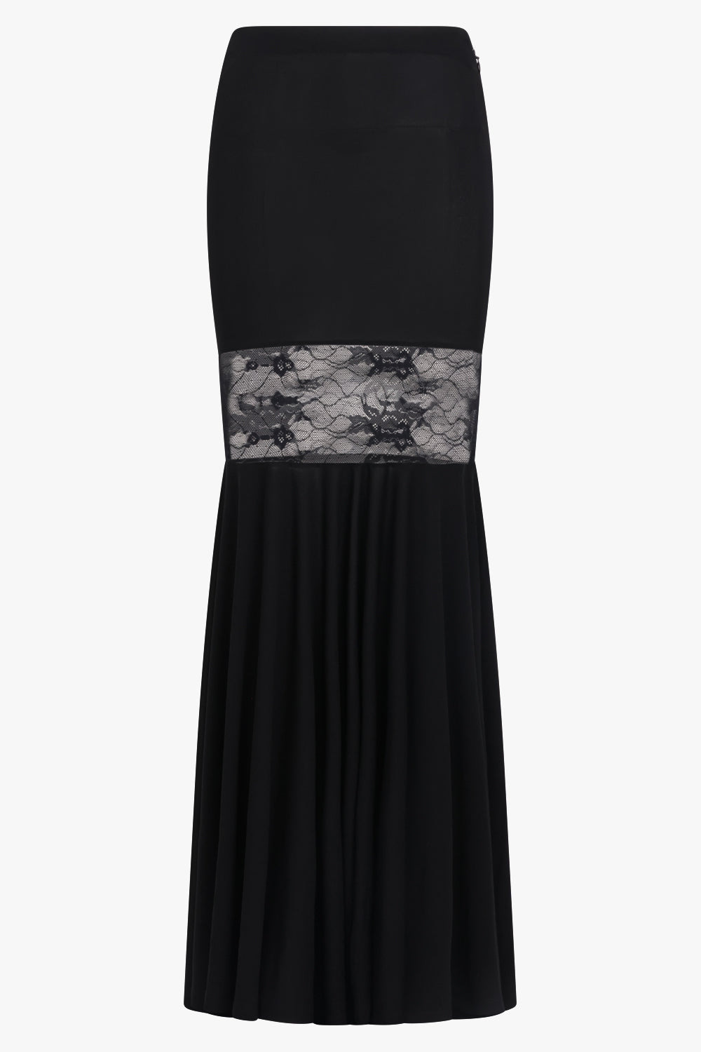 FLUID MERMAID MAXI SKIRT WITH LACE PANEL | BLACK