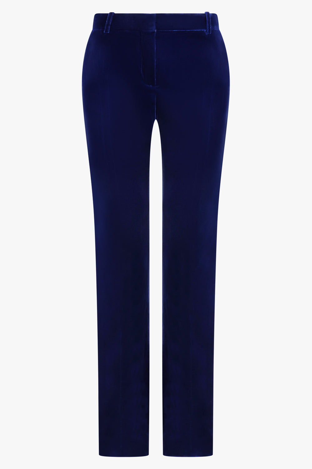 - Fabrication: 50% Viscose, 50% Cupro - Soft velvet finish - Straight, tapered leg style - Waistband with belt loops - Front zip fly closure - Side seam pockets - Back welt pockets Size and Fit Sophie: Model is 189cm/6’02” and is wearing a size FR36 Model Measurements: Bust: 76cm, Waist: 61cm, Hips 87.5cm French sizing Fits true to size Measurements Size 36: Waist 76cm, Hip 82cm, Length 113cm Size 38: Waist 78cm, Hip 84cm, Length 113cm Size 40: Waist 82cm, Hip 88cm, Length 113cm Size 42: Waist 86cm, Hip 92cm, Length 113cm