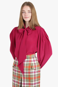 - Fabrication: 100% silk - High tie style neckline - Rounded neckline - Centre front button closure - Pleated balloon sleeves - Thick bell cuffs with button closure Size and Fit Sophie: Model is 189cm/6’02” and is wearing a size FR36 Model Measurements: Bust: 76cm, Waist: 61cm, Hips 87.5cm French sizing Fits true to size Measurements Size 36: Bust 92cm, Waist 92cm, Hip 92cm, Length 74cm Size 38: Bust 96cm, Waist 96cm, Hip 96cm, Length 74cm Size 40: Bust 100cm, Waist 100cm, Hip 100cm, Length 74cm Size 42: Bust 102cm, Waist 102cm, Hip 102cm, Length 74cm