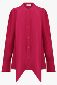 GATHERED L/S SLEEVE TIE NECK BLOUSE | BURNT FUCHSIA