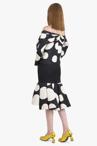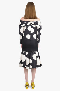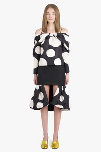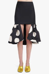 PEPLUM POLKA DOT MIDI SKIRT WITH CUT OUT DETAIL | BLACK/WHITE