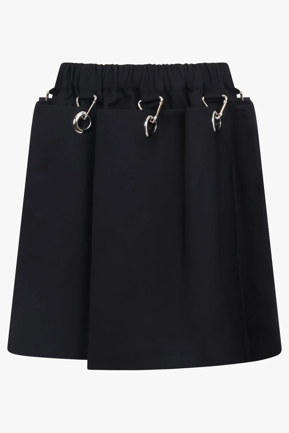 A modern essential with subtle detailing, the COMME DES GARCONS Elastic Waist Pleat Mini Skirt with Eyelet Detail in Black blends classic tailoring with distinctive design. This mini skirt features delicate eyelet accents and pleated construction, adding texture and visual interest while maintaining a sleek, contemporary silhouette. - Fabrication: 100% Polyester; lining: 100% Cupra - Mini skirt in classic black - Elasticated waistband for comfortable, adjustable fit - Pleated construction with eyelet detailing for subtle sculptural and visual interest - Tailored yet relaxed design for versatile styling Style it with a fitted blouse or top and finish the look with heels to elevate the outfit with refined sophistication. Size and Fit Tiah: Model is 178cm/5’9” and is wearing a size S Model Measurements: Bust: 86cm, Waist: 69cm, Hips 90.5cm Form fitting, stretchy material. Recommended to take usual size.