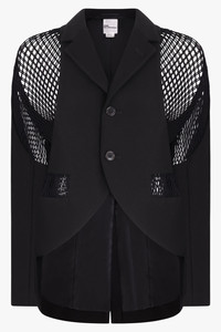 MESH PANEL SINGLE BREASTED WOOL BLAZER | BLACK