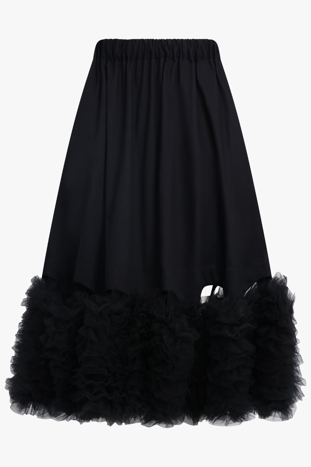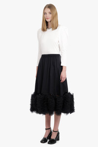 MIDI SKIRT WITH ATTACHED TULLE HEM | BLACK