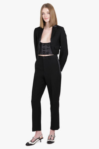- Fabrication: wool - 75% mohair 25% attach : silk 50% wool 50% - Concealed fly - Button fastening belt loops - Two diagonal pockets to the sides - Satin side detail pressed crease - Rear flap pocket rear welt pocket - Tapered leg Size and Fit Sophie: Model is 179cm/5’10” and is wearing a size S Model Measurements: Bust: 76cm, Waist: 61cm, Hips 87.5cm Fits true to size