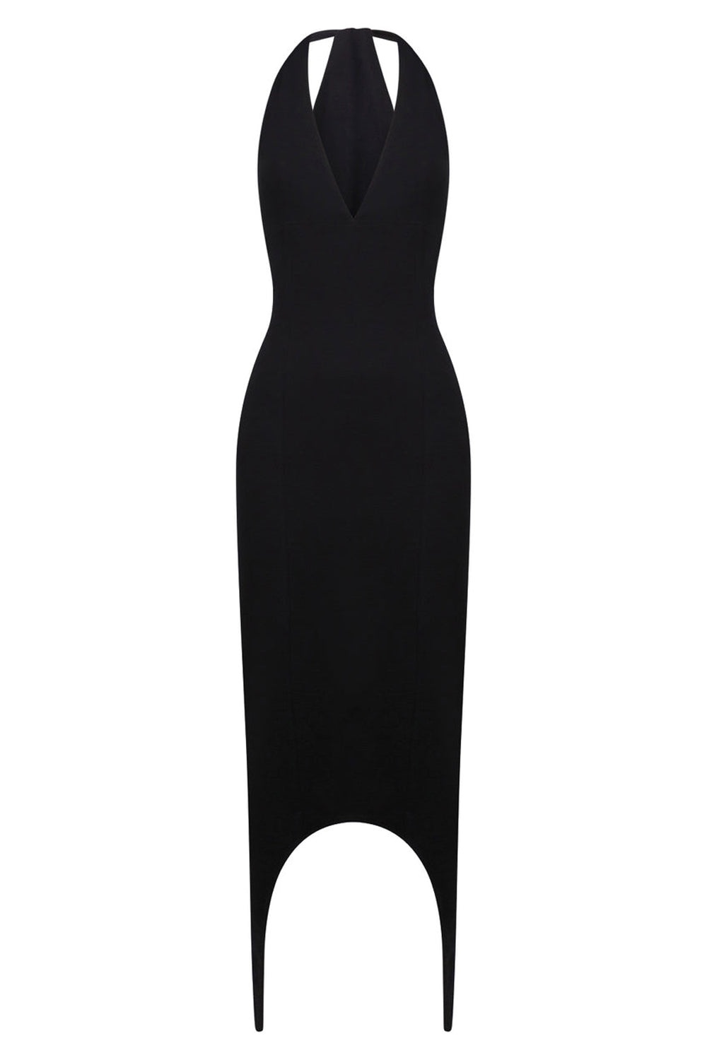 halterneck V-neck midi dress