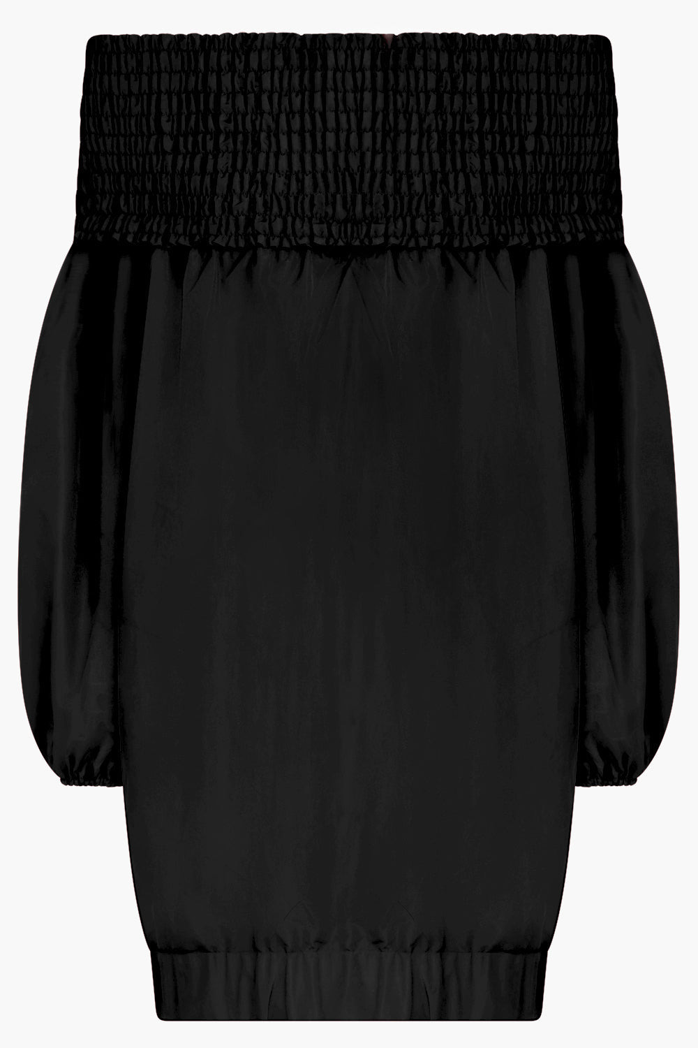 OFF-THE-SHOULDER SMOCK MINI DRESS IN ECO-FRIENDLY FAILLE | BLACK
