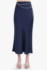 CHAIN DETAIL MAXI SKIRT | DEEP NAVY