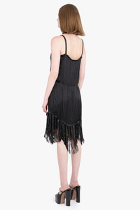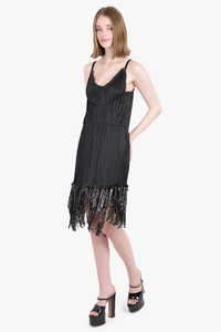 Satin & mesh fringed mini dress