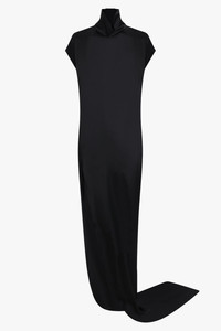- Fabrication: - 61% acetate, 39% viscose - Floor length - Square, loose fit - Sleeveless - Wide square shoulders - Level shoulder seams - High neck - Centre back button opening - Skirt that slopes from a split - High on the right thigh, tapering into a long train - Semi-shiny surface and washed finish Size and Fit Sophie: Model is 179cm/5’10” and is wearing a size IT40 Model Measurements: Bust: 76cm, Waist: 61cm, Hips 87.5cm Italian sizing Fits true to size