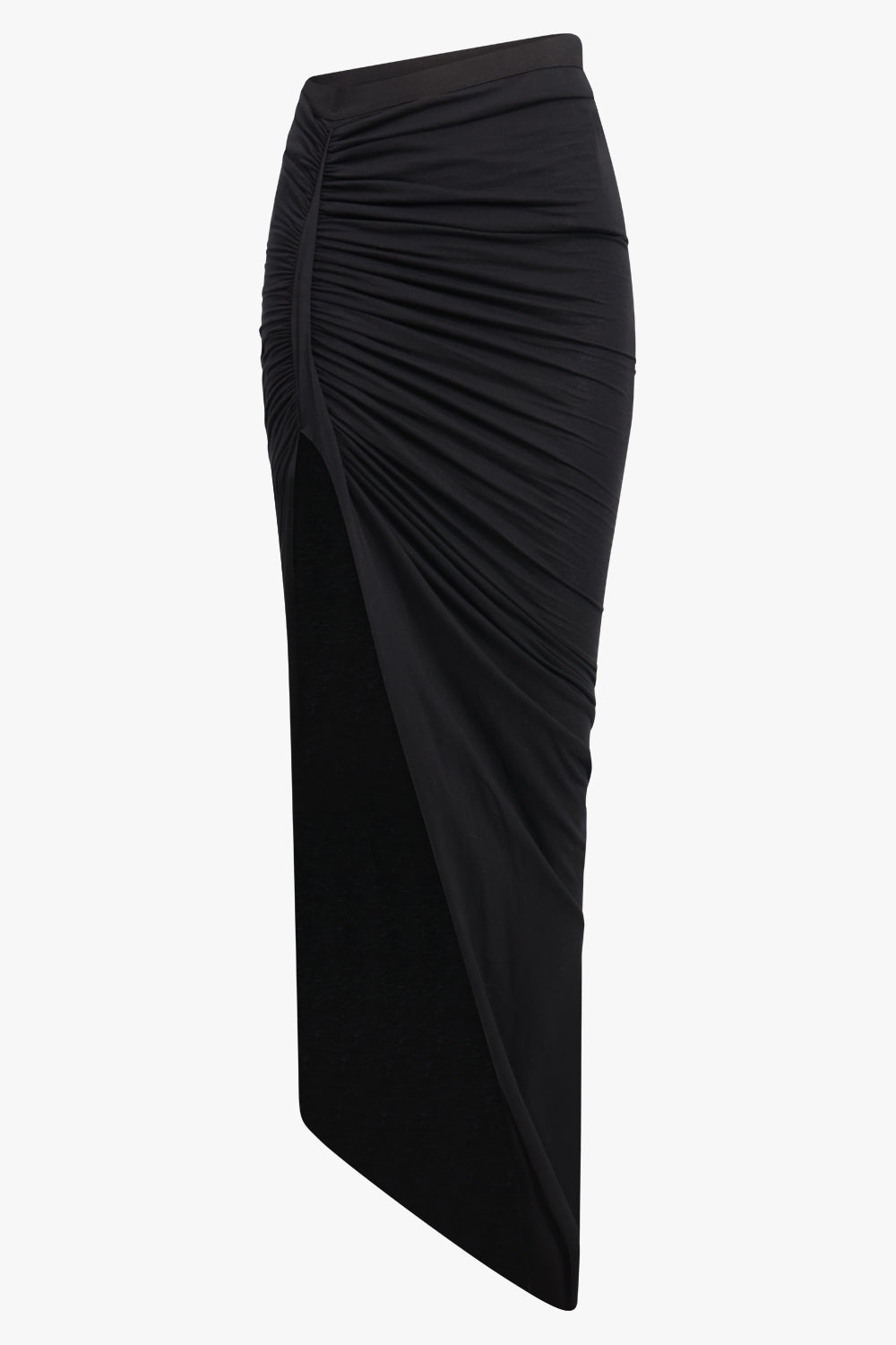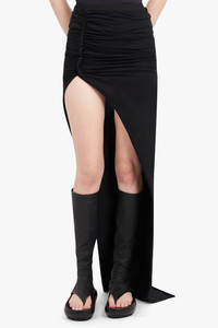 This classic cotton jersey skirt features an asymmetrical design and is accented with topstitching and gathering at the front. The front hem also includes a vent for added style. Fabrication: 100% Cotton Size and Fit Sophie: Model is 179cm/5’10” and is wearing a size IT38 Model Measurements: Bust: 76cm, Waist: 61cm, Hips 87.5cm Italian Sizing Fits true to size Measurements 36: Waist 64cm, Hip 70cm, Length 150cm 38: Waist 68cm, Hip 74cm, Length 150cm 40: Waist 70cm, Hip 76cm, Length 150cm