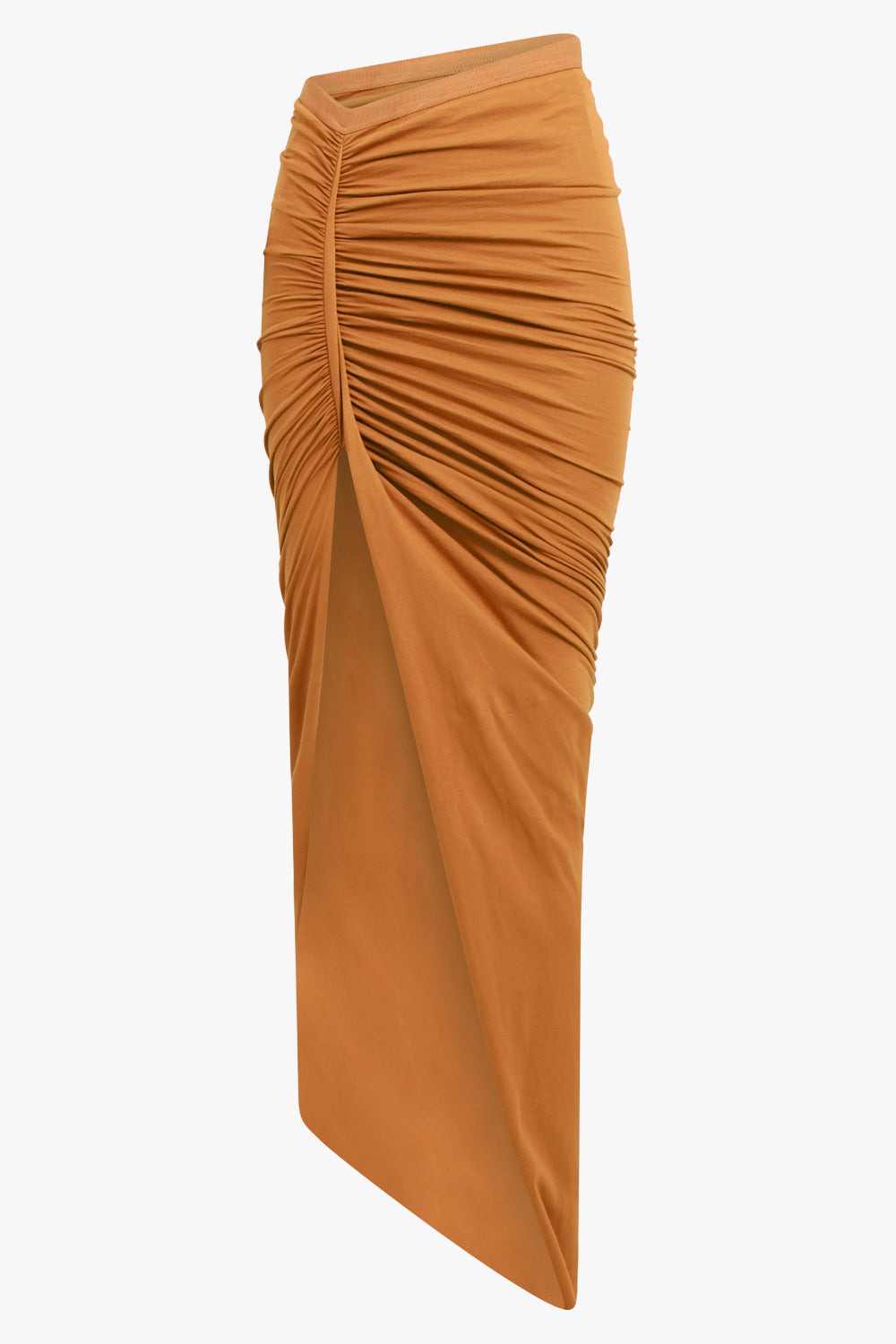 This classic cotton jersey skirt features an asymmetrical design and is accented with topstitching and gathering at the front. The front hem also includes a vent for added style. Fabrication: 100% Cotton Size and Fit Sophie: Model is 179cm/5’10” and is wearing a size IT38 Model Measurements: Bust: 76cm, Waist: 61cm, Hips 87.5cm Italian Sizing Fits true to size Measurements 36: Waist 64cm, Hip 70cm, Length 150cm 38: Waist 68cm, Hip 74cm, Length 150cm 40: Waist 70cm, Hip 76cm, Length 150cm