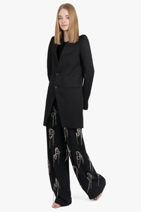 - Fabrication: 100% Virgin wool - Peaked lapel - Single-button closure - Welt pockets - Padded shoulders - Five-button surgeon's cuffs - Darts at back collar - Vents at back hem - Welt pockets and patch pockets at interior - Full poplin and satin lining - Buffalo horn hardware Size and Fit Sophie: Model is 179cm/5’10” and is wearing a size IT38 Model Measurements: Bust: 76cm, Waist: 61cm, Hips 87.5cm Italian sizing Fits true to size