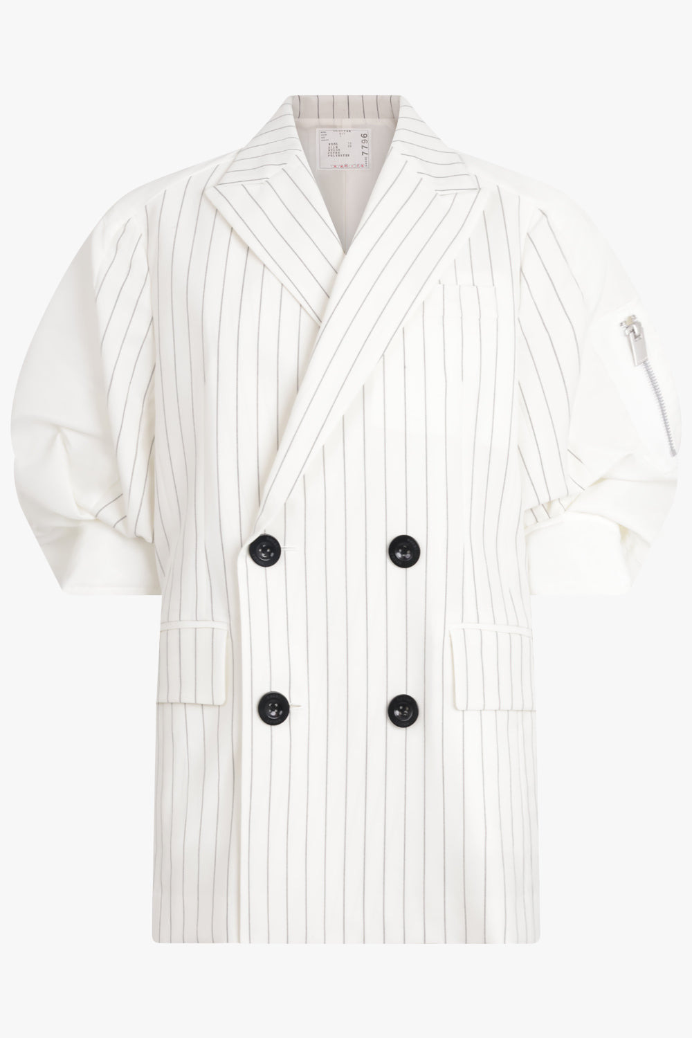 CONTRAST BALLOON S/S DOUBLE BREASTED STRIPE JACKET | OFF WHITE/BLACK