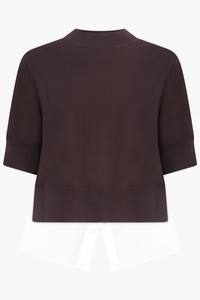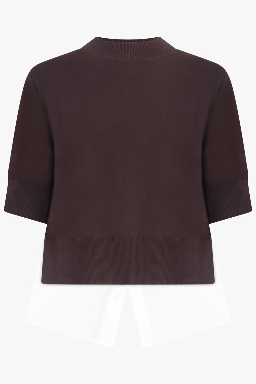 KNIT S/S PULLOVER WITH SHIRT PANELLING | BROWN/OFF WHITE