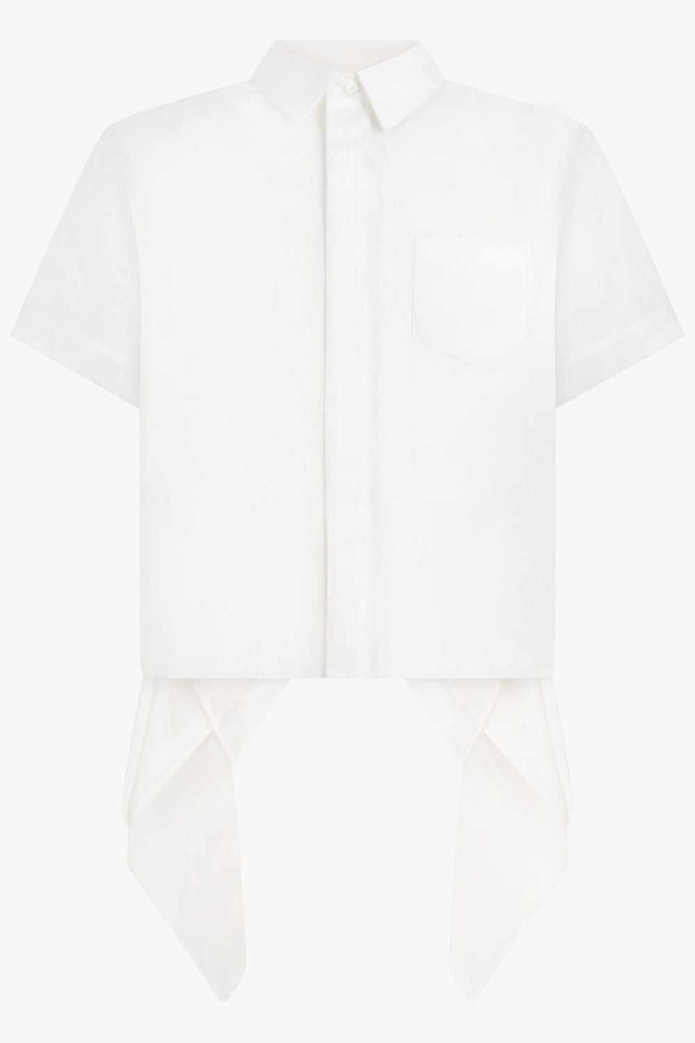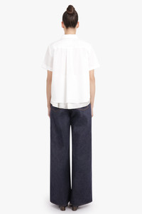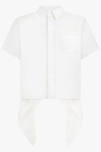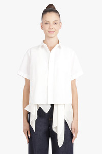 A modern wardrobe essential, S/S Shirt With Drape Panel Detail in off white captures sacai’s artful blend of fluidity and structure. Crafted from a refined cotton-blend poplin, this shirt features a softly draped panel that elegantly falls from one shoulder, adding dimension and movement to a classic silhouette. The clean, crisp off-white tone lends versatility, while the asymmetric drape introduces a subtle yet compelling point of difference. - Fabrication: Premium cotton-blend - Luxurious poplin construction with crisp finish and smooth drape - Drape-panel detail falling from the shoulder for contemporary elegance - Relaxed yet tailored fit that flatters the frame - Minimal collar and button-down front offering refined structure - Neutral off-white colourway for effortless styling Style it with straight leg trousers or a tailored skirt for a sculptural daytime look. Size and Fit Tiah: Model is 178cm/5’9” and is wearing a size JP1 Model Measurements: Bust: 86cm, Waist: 69cm, Hips 90.5cm Fits true to size Measurements Size 1: Bust 102cm, Waist 102cm, Hip 102cm, Length 90cm Size 2: Bust 104cm, Waist 104cm, Hip 104cm, Length 90cm Size 3: Bust 106cm, Waist 106cm, Hip 106cm, Length 90cm Size 4: Bust 108cm, Waist 108cm, Hip 108cm, Length 90cm
