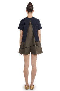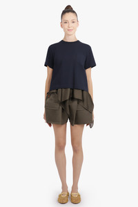 A modern wardrobe essential, the S/S T-Shirt With Attached Drape Panels in Black/Khaki reinterprets the classic T-shirt through the brand’s signature approach to layered construction. Crafted from soft cotton jersey with attached polyester drape panels, this T-shirt introduces sculptural detailing that adds movement and dimension to a relaxed silhouette. The black and khaki tones offer versatility, while the fit ensures effortless wearability. - Fabrication: Cotton jersey with polyester drape panels - Soft, breathable cotton jersey construction for comfort - Attached drape panels for sculptural, layered effect - Relaxed fit that drapes naturally across the body - Classic crew neckline with contemporary detailing - Black/khaki colourway for versatile, modern styling Style it with tailored trousers or denim for a polished casual look. Size and Fit Tiah: Model is 178cm/5’9” and is wearing a size JP1 Model Measurements: Bust: 86cm, Waist: 69cm, Hips 90.5cm Fits true to size Measurements Size 1: Bust 92cm, Waist 92cm, Hip 92cm, Length 90cm Size 2: Bust 96cm, Waist 96cm, Hip 96cm, Length 90cm Size 3: Bust 98cm, Waist 98cm, Hip 98cm, Length 90cm Size 4: Bust 102cm, Waist 102cm, Hip 102cm, Length 90cm