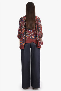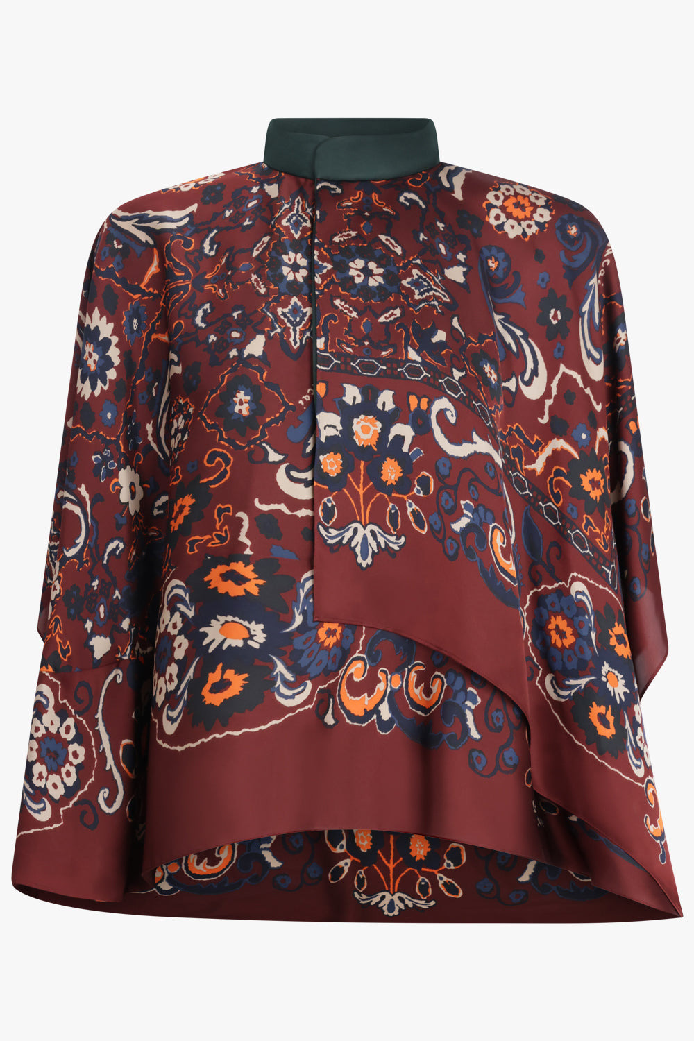 Artful and expressive, the Scarf Short Sleeve Floral Print High Neck Drape Blouse in Bordeaux/Multi delivers soft structure and fluid movement. Crafted entirely from 100% polyester, the blouse features an abstract floral print in rich tones, complemented by a softly draped silhouette. A built-in scarf detail at the high neckline creates elegant volume, while short sleeves and subtle gathering add balance and ease. - Fabrication: 100% Polyester - Attached Parts: 100% Polyester - All-over floral print in Bordeaux and multicolour tones - Built-in scarf detail with soft high neckline drape - Short sleeves with relaxed fit - Lightweight fabrication with fluid movement - Subtle gathered detail for shape and structure Style tucked into tailoring or let it drape freely over wide-leg pants for a refined yet expressive ensemble.