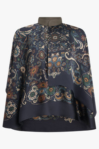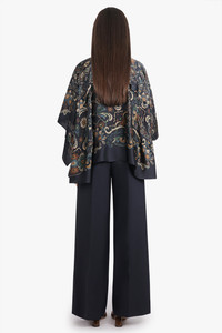 Elegant and expressive, the Scarf Short Sleeve Floral Print High Neck Drape Blouse in Navy/Multi blends fluid movement with refined detail. Crafted entirely from 100% polyester, this blouse showcases an abstract floral print in cool navy and multicolour tones. A built-in scarf at the high neckline adds sculptural softness, while the short sleeves and gentle draping offer a relaxed yet elevated silhouette. - Fabrication: 100% Polyester - Attached Parts: 100% Polyester - Abstract floral print in navy and multicolour tones - Soft high neckline with built-in scarf detail - Relaxed short sleeves - Lightweight and fluid fabric - Subtle gathering and draped construction Pair with structured trousers or a flowing skirt to highlight the blouse’s soft tailoring and expressive print.