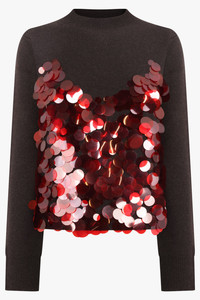 This exquisite knit pullover is crafted from soft, 100% wool, offering warmth and a luxurious touch. The relaxed silhouette and ribbed trims create a comfortable yet refined fit, while intricate sequin embroidery across the front adds subtle shimmer and textural interest. In a rich brown hue, this pullover embodies sophisticated elegance with a modern, statement-making edge. - Fabrication: 100% Wool - Soft wool knit for warmth and comfort - Relaxed silhouette with tailored ease - Ribbed crew neckline, cuffs, and hem - Intricate sequin embroidery detailing on the front - Long sleeves with relaxed fit Style with tailored trousers for elevated daytime or evening looks. Size and Fit Tiah: Model is 178cm/5’9” and is wearing a size JP1 Model Measurements: Bust: 86cm, Waist: 69cm, Hips 90.5cm Fits true to size.