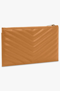The Saint Laurent Monogramme Bill Pouch is a zip clutch adorned with interlaced YSL metal initial at the centre and quilted overstitching. It features an inner card pocket and an outer pocket. Fabrication: 100% Calfskin Leather Measurements Height 12cm, Length 20cm, Width 1cm