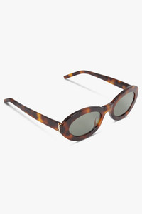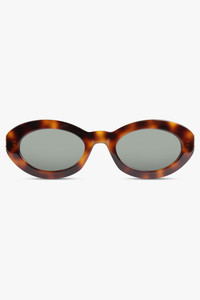 Crafted with oval acetate frames and nylon lenses, these sunglasses feature metal Cassandre hinges for durability. They provide 100% UVA/UVB protection and are designed to be compatible with prescription lenses. Fabrication: 80% Acetate, 20% Nylon
