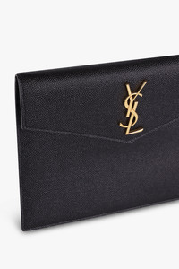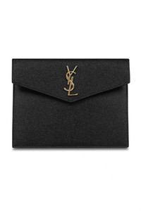 The Saint Laurent Small Uptown Pouch features a metal YSL monogramme at the front. It is crafted from a luxurious grained calfskin leather with a magnetic envelope closure. Fabrication: 100% Grained Calfskin Leather Measurements Width: 20cm, Height: 15cm, Depth: 1.5cm