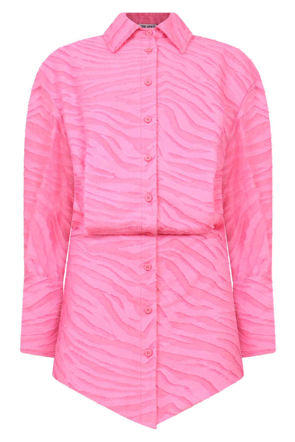 The Attico Silvye Zebra Mini Dress in Geranium is the house's modern take on classic shirting silhouettes. The fabrication of this dress is a zebra patterned jacquard fil-coupe effect and features exaggerated shoulders, buttoned down front, collar and cinched waist. Fabrication: 93% Cotton, 7% Polyamide, Lining: 100% Polyester Size and Fit Nikita: Model is 174cm/5’7” and is wearing a size IT36 Model Measurements: Bust: 30cm, Waist: 26.5cm, Hips 34cm Italian sizing This style fits true to size