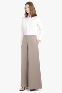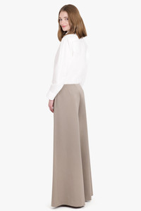 - Mid-rise pant - Exaggerated wide-leg - Side seam pockets - Side zip closure Fabrication: 100% Sheep Wool, Lining 100% Silk Size and Fit Sophie: Model is 179cm/5’10” and is wearing a size 4 Model Measurements: Bust: 76cm, Waist: 61cm, Hips 87.5cm True to size, please note US4 is pinned on the model Measurements 4: Waist 86cm, Hip 102cm, Length 110cm 6: Waist 88cm, Hip 104cm, Length 111cm 8: Waist 90cm, Hip 106cm, Length 112cm