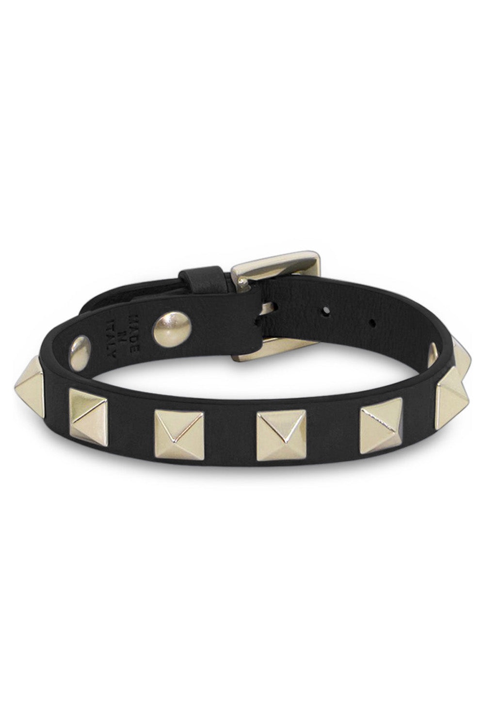The Valentino Garavani Rockstud Leather Cuff is punctuated with the house's instantly recognizable 'Rockstuds' each one has been hand-applied and galvanized for exceptional shine. It's made from supple camelia leather that comfortably wraps your wrist and fastens with an adjustable buckle. Fabrication: 100% Calf Leather Measurements Height 1cm, Length 22cm
