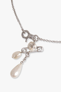 - Fabrication: 100% Brass - Rounded pearl with a central orb - Features a polished finish - Trace chain design - Orb motif - Safety pin motif Measurements Total chain length 42cm Pendant drop 7.6cm