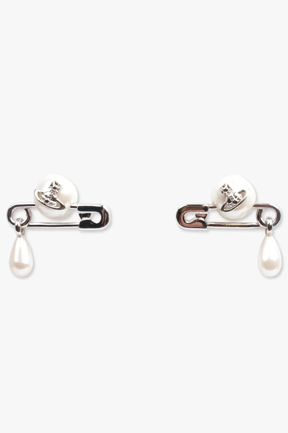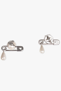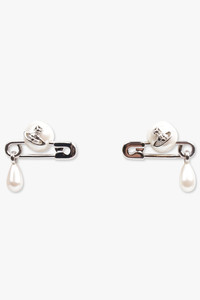 Vivienne Westwood's Silver-toned Claude Small Stud earrings feature a rounded pearl with a central orb detail, enhanced by a classic safety pin motif that captures the house's iconic punk aesthetic. The design offers a delicate baroque pearl drop, complete with the customised butterfly-back fastenings. Fabrication: 100% Brass Measurements Height 2.7cm, width 2.2cm
