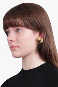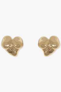 Vivienne Westwoods gold-tone Mimosa Feminine Energy Earrings revive signature house iconography with an asymmetrical heart-shaped motif, delicately sculpted into a tapered point. The design features anatomical contours and a smooth polished finish, evoking the silhouette of ancient Greek female statues and nodding to Vivienne Westwood heritage motifs. - Main material: 100% brass - Gold-tone plating with light patina detailing - Asymmetrical heart-shaped design - Three-dimensional sculptural form - ‘Line Orb’ engraved detail - Polished smooth surface - Lightweight construction - Post and clip back fastening Style with Vivienne Westwood accessories for a modern punk-luxe statement. Measurements Height: 30.65mm, Width: 30mm, Depth: 11.3mm