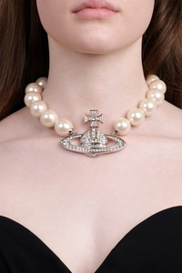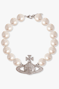 - Fabrication: 100% Brass - Orb motif covered in - Preciosa crystals - Gold-tone plating - Adjustable lobster clasp Measurements Total chain length: 42cm - 44cm Orb dimensions: height 5.5cm, width 7.5cm Pearl dimensions: 2cm